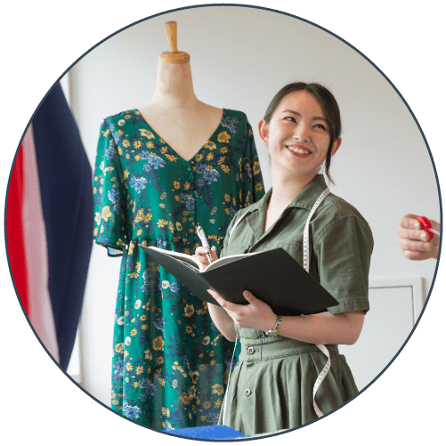 将来オリジナルブランドの立上げやブランドプロデューサーを目指す上で必要になる『デザインを考える・指示ができるスキル』は身に付けることができます。