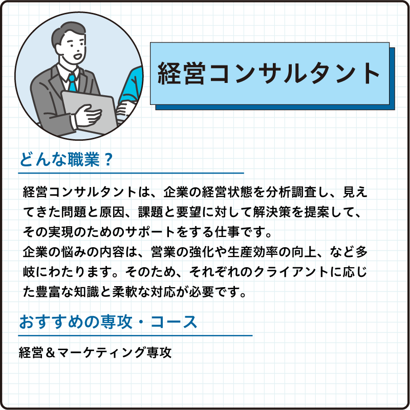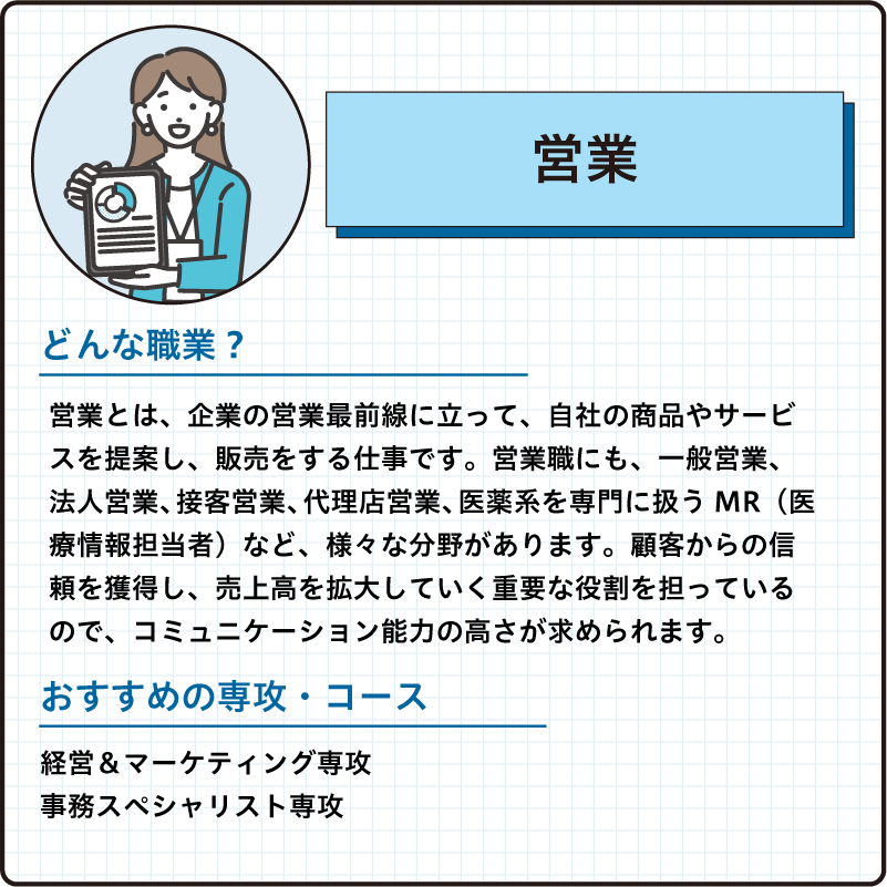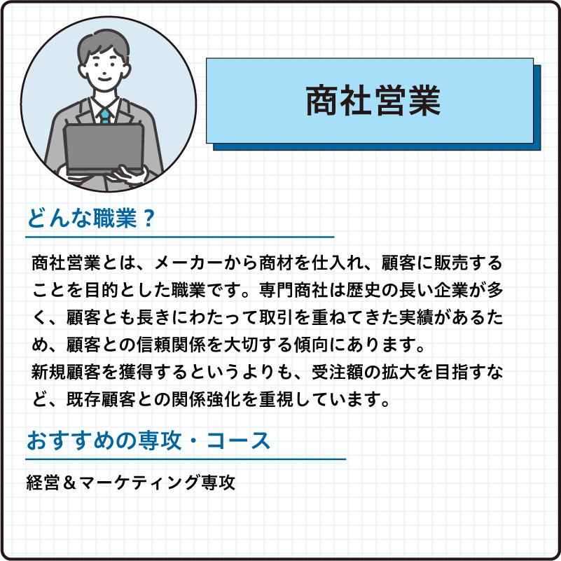 ビジネス全般の学びを行い幅広い業界を目指せる!!